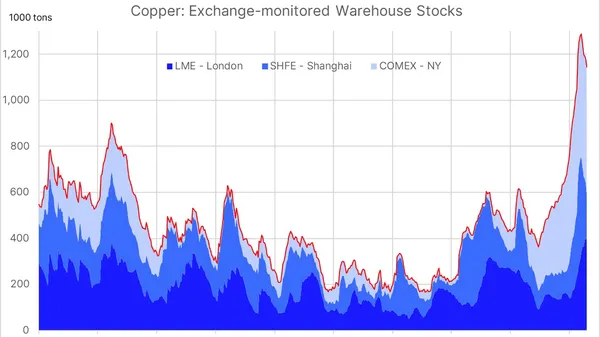 این پنجمین هفته متوالی است که ذخایر این فلز استراتژیک روند نزولی را تجربه میکند؛ روندی که عمدتاً ناشی از تحولات بازار چین است.