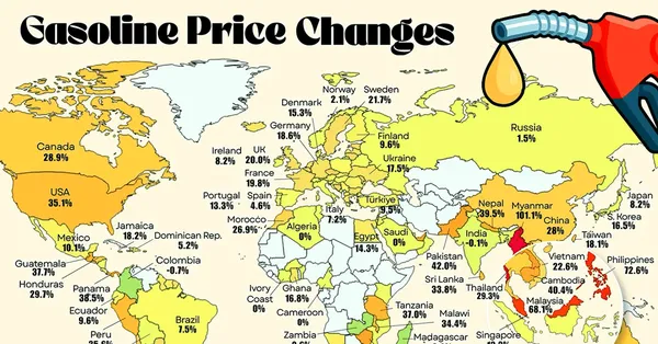 این دادهها که بر پایه اطلاعات GlobalPetrolPrices تهیه شده، تغییرات قیمت سوخت در ۱۲۸ کشور را طی کمتر از دو ماه رصد کرده و نشان میدهد در برخی کشورها قیمتها حتی بیش از دو برابر شده است.
